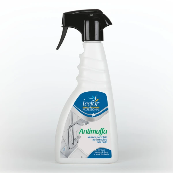 Antimuffa препарат за премахване на мухъл и плесен. Концентриран професионален продукт на базата на хлор с висока дезинфекцираща сила. Едновременно избелва и хигиенизира. Премахва мухъл, гъбички и бактериални замърсявания от повърхности, особено такива изложени на влага и кондензат, като стени, подове, плочки.