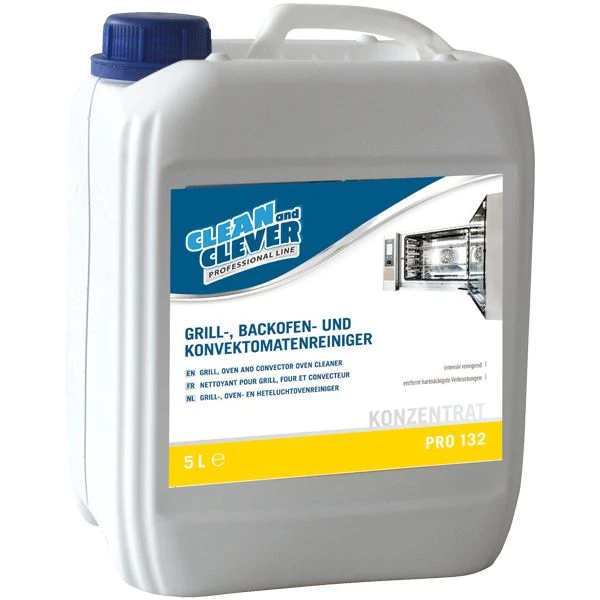 PRO 132 e силно алкален препарат обезмаслител за почистване на силно замърсени повърхности и оборудване – скари, фури, конвектомати, тави, транспортни ленти и резервоари Съвместим с неръждаема стомана, пластмаса, камък и порцелан Лесен за изплакване.