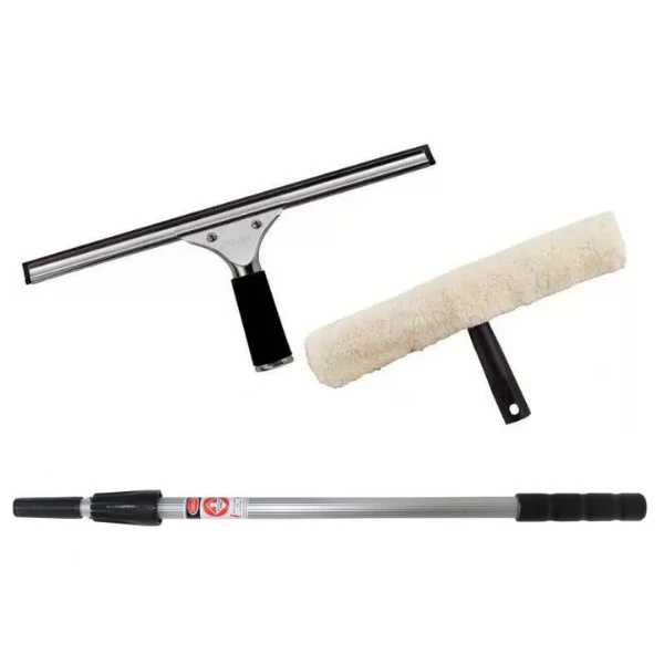 Комплект Стандарт + : комплект професионални висококачествени инструменти за измиване на стъкла и прозорци състоящ се от :