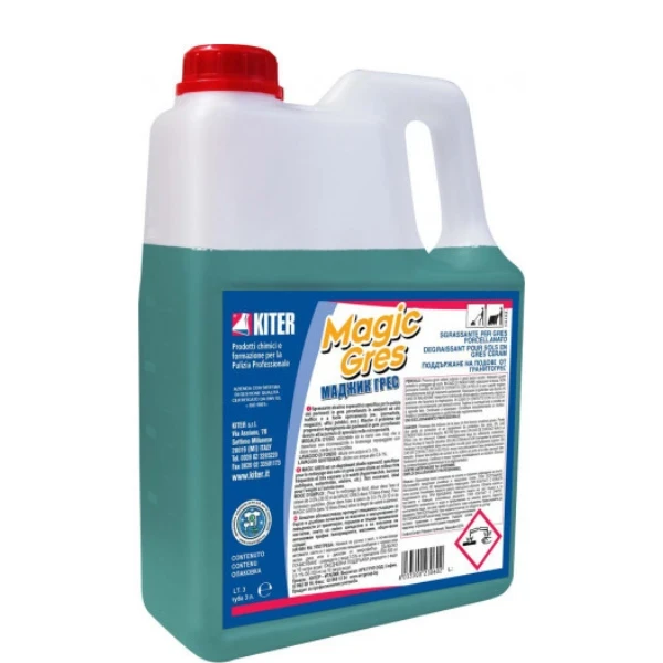 Magic Gres е силно концентриран, високо алкален препарат, специално създаден за бързо и пълно премахване на естествени, атмосферни замърсители, масла и греси, натрупани върху твърди алкално и водо устойчиви повърхности. Благодарение на синергичната комбинация от алкални повърхностноактивни вещества и водо-разтворители, Magic Gres отстранява ефекта на постепенното потъмняване на фаянсови и гранитогресни подове, причинено от натрупването на замърсявания в микропористостта на повърхностите вследствие на тежък, интензивен замърсителен трафик. Предназначен за почистване на подове в индустрията, публични и обществени сгради, офиси и частни домове.