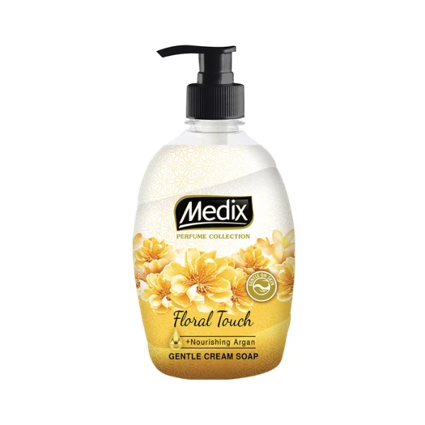Medix Floral Touch е кремообразен течен сапун за ръце с изискан парфюмен аромат и екстракт от Макадамия. Меката му формула измива деликатно кожата на ръцете и е обогатена със специални хидратиращи агенти. Насладете се на финото ухание на изискан френски парфюм, който съчетава свежестта на бергамот, ефирното и романтично ухание на гардения, момина сълза и пленителните нотни на мускус, амбър и сандалово дърво.