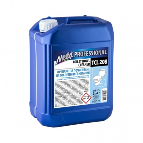 Medix Professional Toilet Bowl Cleaner е хигиенизиращ препарат с киселинно действие за професионална употреба за основно и поддържащо почистване на санитарни съоръжения. Отстранява варовикови отлагания, петна от ръжда, органични и неорганични замърсявания. Без мирис на хлор. Предназначен за всички киселиноустойчиви повърхности в санитарните помещения като тоалетни чинии, писоари, бидета, умивалници. Концентрираният гел плътно покрива третираните повърхности, ефикасно отстранява варовикови отлагания, петна от ръжда, органични и неорганични замърсявания, почиства до блясък и действа и в каналите.