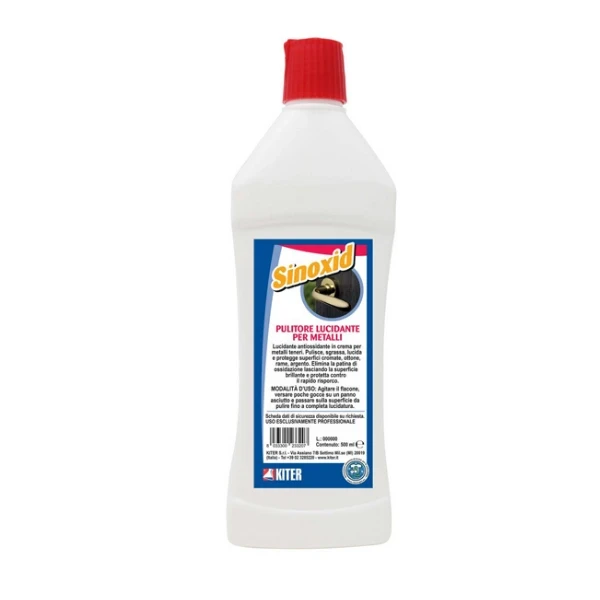 Sinoxid е готов за употреба антиоксидантен крем, специално създаден за почистване, полиране и последваща защита на цветни метали като месинг, мед, сребро, хромирани повърхности и др. Предназначен за ежедневно почистване, без последващо изплакване с вода на повърхности изискващи поддържането на високи стандарти относно професионалната хигиена и естетически възприятия. Обезмаслява в дълбочина, елиминирайки повърхностната патина от окислен метал, придавайки на повърхностите интензивен и наситен блясък. Sinoxid почиства и реставрира, без да надрасква и оставя следи от износване на повърхността, благодарение на своите съставни компоненти предпазва третираната повърхност, като избягва бързото възстановяване на замърсителите и повторното им последващо окисляване.